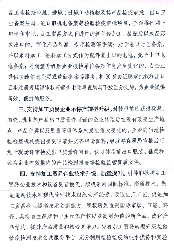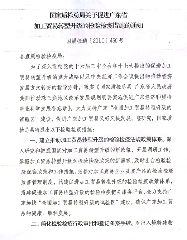 轉(zhuǎn)發(fā)國家質(zhì)檢總局關(guān)于促進廣東省加工貿(mào)易 轉(zhuǎn)型升級的檢驗檢疫措施的通知