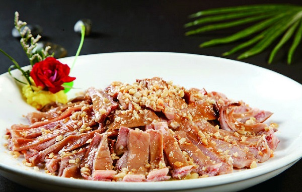 這道菜采用猛火煮、冷水浸(而且是用當地冰涼的井水浸)的方法,將豬肚煮得很透,加上好的佐料,燒成后香郁肉甜,風味獨特。這道菜的具體烹制方法是保秘的,所以只有去龍歸才有吃到最正宗的。