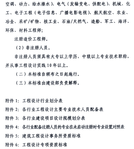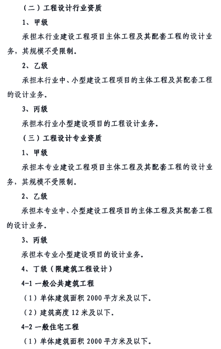 根據《建設工程勘察設計管理條例》和《建設工程勘察設計資質管理規定》,我部制定了《工程設計資質標準》,現印發給你們,請遵照執行。原《關于頒發工程勘察資質分級標準和工程設計資質分級標準的通知》(建設[2001]22號)中“工程設計資質分級標準”同時廢止。其他有關規定與本標準不符的,以本標準為準。執行中有何問題,請與我部建筑市場管理司聯系。